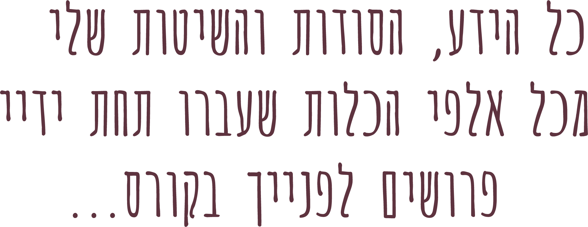 אם את יודעת לנצל הזדמנויות, זה הזמן שלך. כל הידע המטורף שבקורס שעבדתי עליו 4 שנים.