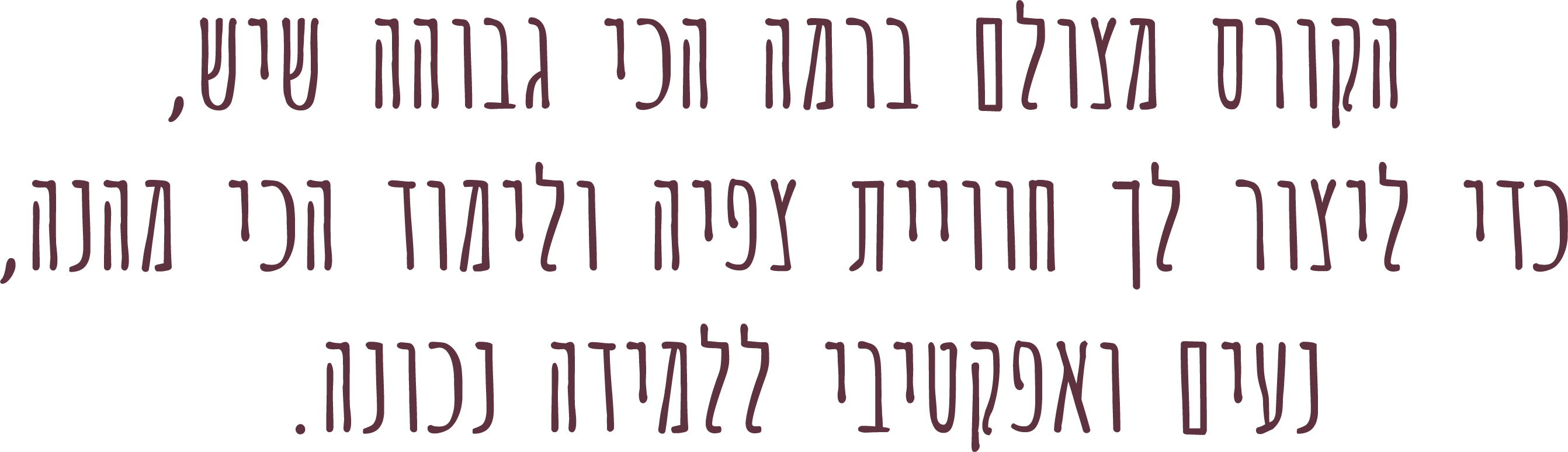 הקורס באיכות ובסטנדרט הכי גבוה שיש
